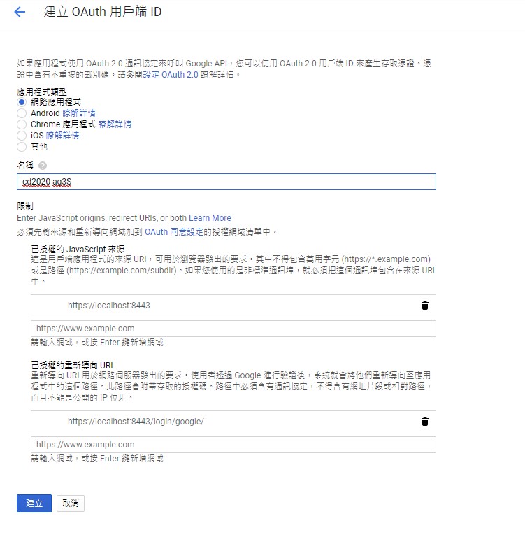 利用Google API設置OAuth 2.0 Client IDs