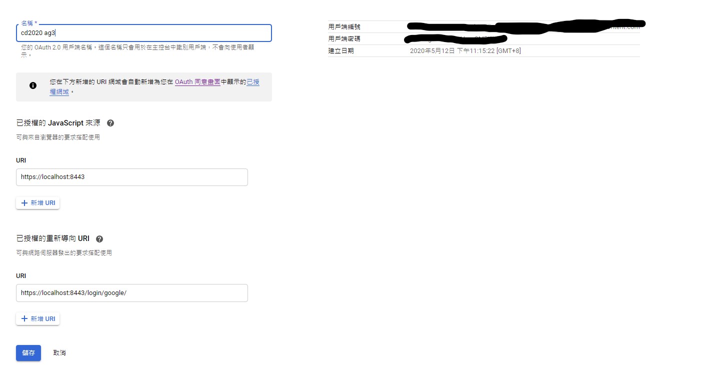 並且將Client ID和Client secret 儲存至 oauth_gm.txt 中